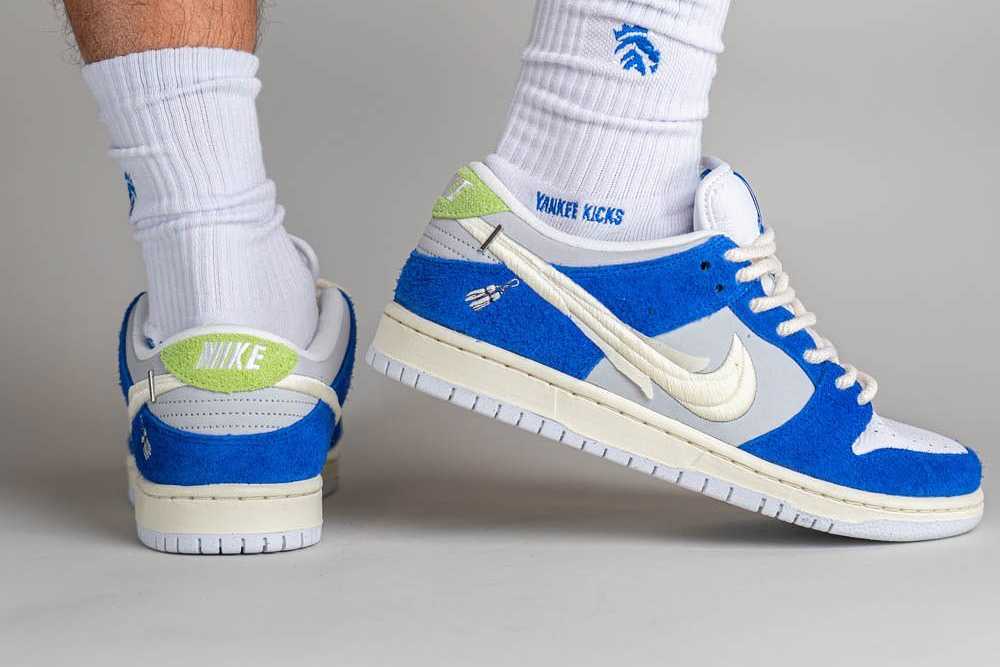 スケートボーディングラインとして誕生したSBダンクをモデルにした今作は、青みがかったグレーをベースに、シャギーブルースウェードのオーバーレイで構成。セイルカラーで複数に重ねられたスウッシュ刺繍と、ヒールにあしらわれたシルバーのパーツが目を引く。また、インソールにはがプリントされる予定であり、こだわりの詰まったコラボレーションモデルの今後のアナウンスに期待したい。